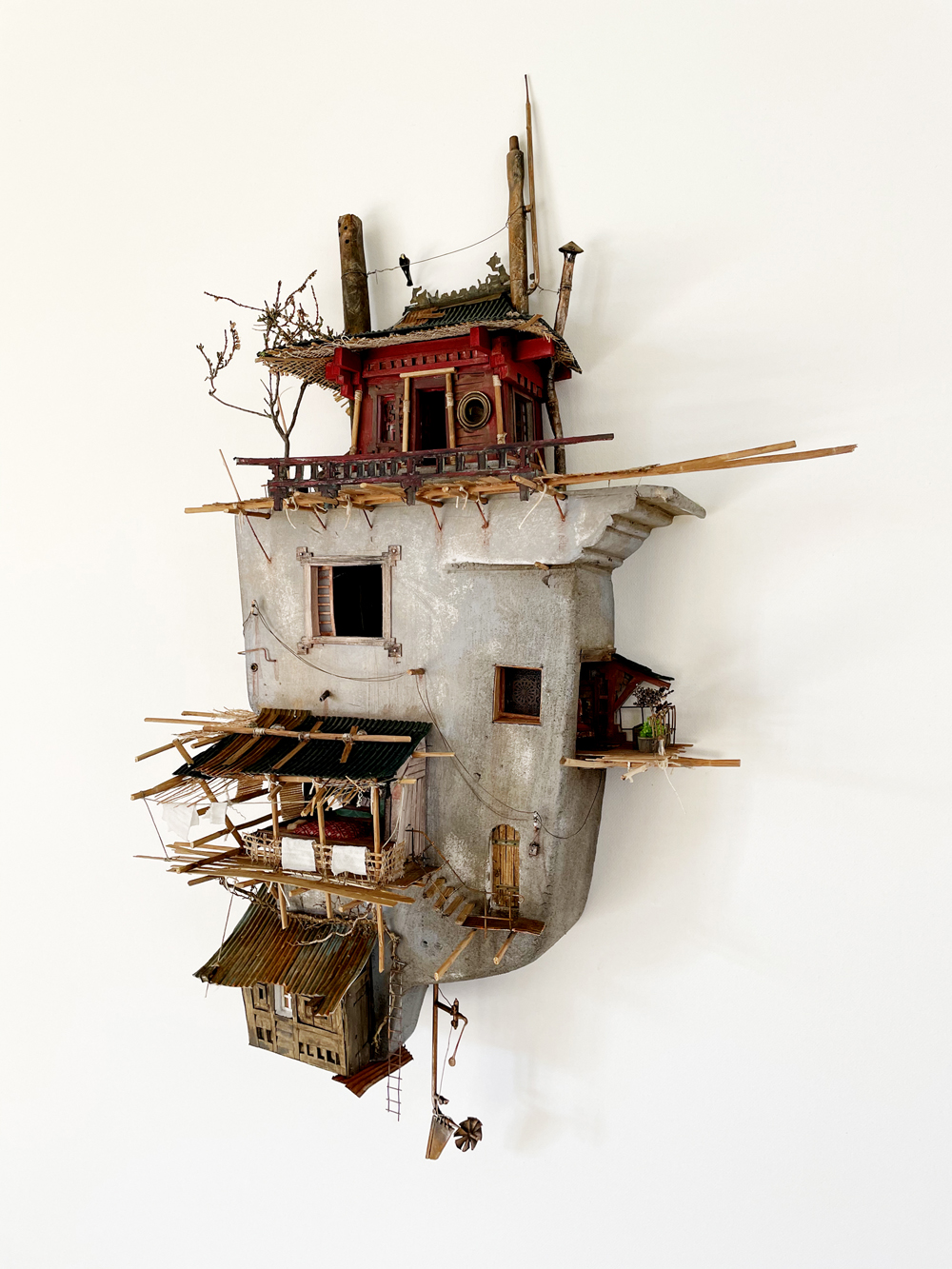 David Mansot, artiste de la région Rhône-Alpes, accroche depuis 10 ans aux murs de nos maisons ses cabanes à rêver. Il suspend ses oeuvres fabriquées à